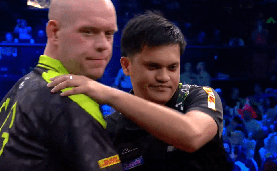The first to step up against some of the best the PDC has to offer were Motomu Sakai and Man Lok Leung. Both held their own against their opponents, Gerwyn Price and Gian Van Veen. Sakai gave The Iceman a hard time, only falling to the Welshman by two legs, losing by six legs to four, and Leung managed to finish a leg first twice against the World Championship finalist, but Van Veen found the crucial sixth leg first.